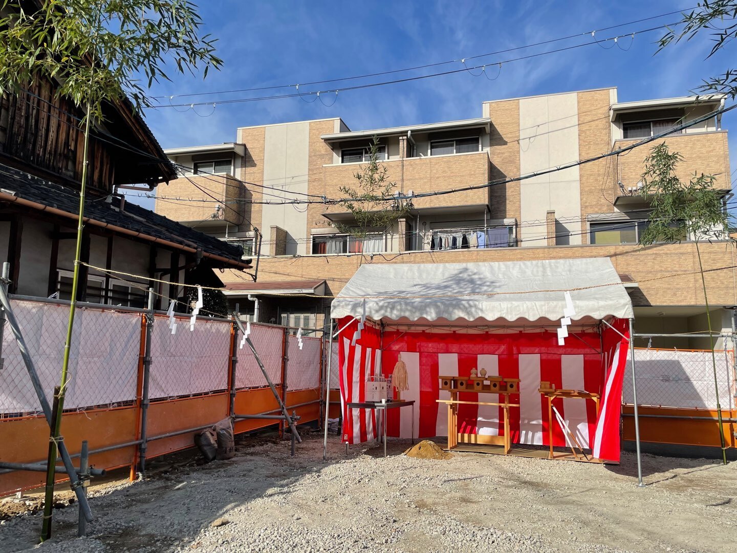 その他 地鎮祭 東大阪市 地鎮祭 前日からご近所で解体工事を施工していて解体工事が無事に終了し、来年から新たに建物を建てる予定で今年最後の大安日の12月25日に地鎮祭をしました!こちらは昔からのお付き合いのある会社で家屋解体の時もお祓いの儀式をさせて頂きました。私自身も初めてのお祓い儀式、地鎮祭儀式だったので大変勉強になりました!テントの設営からさせていただき、お祝い事なので紅白テントも設置青竹も知り合いの方からご好意で頂き、朝から竹を切りに行って設営するなどはじめての経験でしたが素敵な経験をさせて頂きました! 場所 大阪府 東大阪市 施工内容 東大阪市 地鎮祭 1 / 1 お客様の声 昔からの風習の地鎮祭をして来年また新たに建物が建つのが楽しみです 前の施工事例 戸建て 大阪市 東成区 ガスコンロ入れ替え 次の施工事例 マンション・アパート 大阪市 城東区 マンション トイレ入れ替え